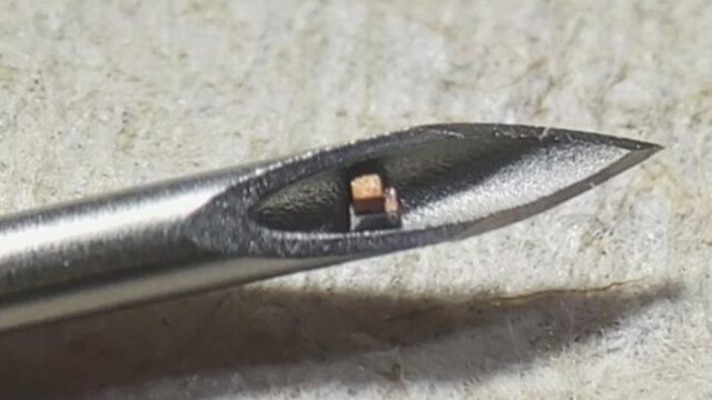 塩つぶサイズで超音波給電と通信はすごい!注射針でチップを埋め込む時代かぁ。もはや何でもできそう。 / 塩つぶサイズのチップを注射で埋め込み 超音波で電力供給と無線通信実現 (ITmedia NEWS)
