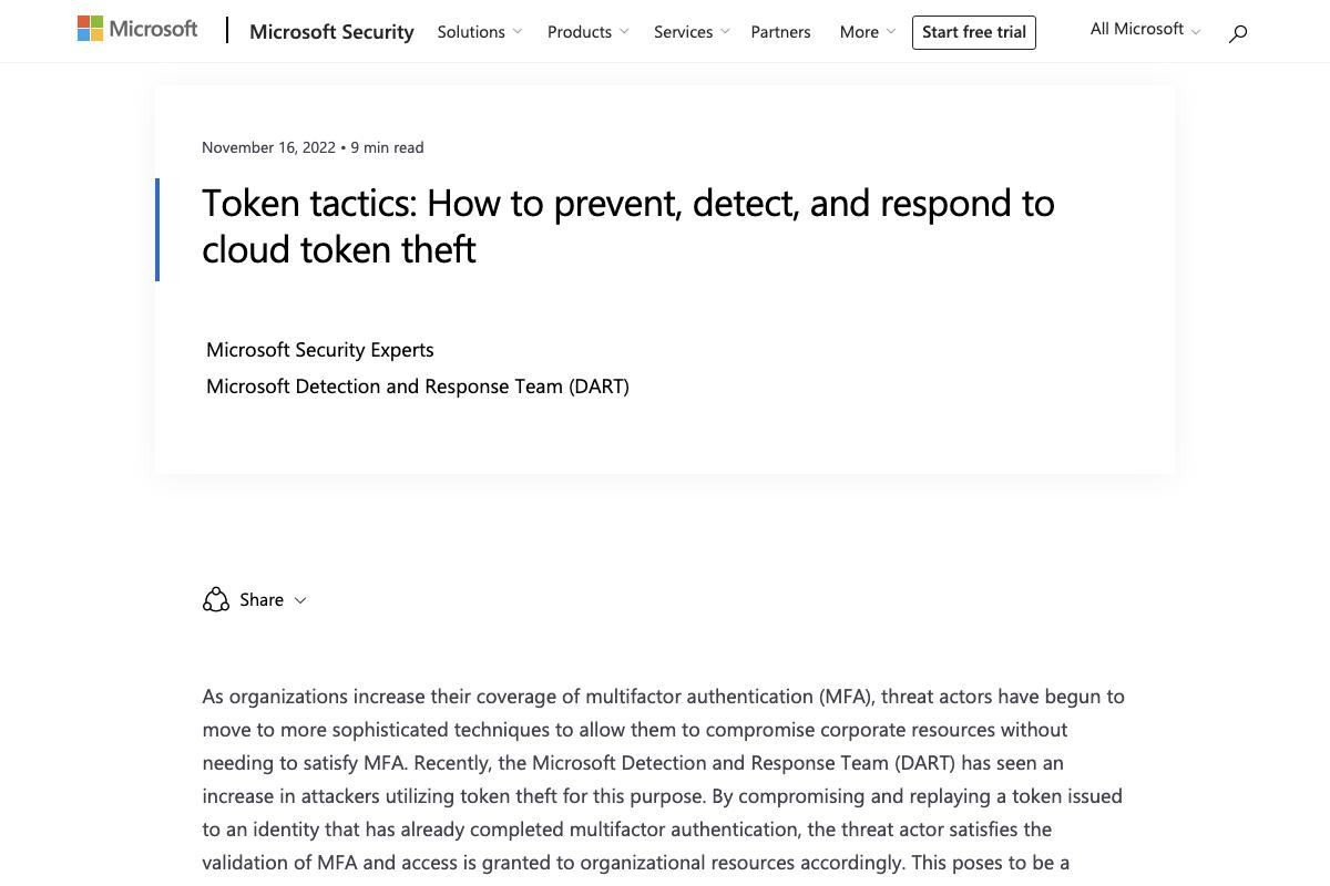 Microsoftはこのほど、Microsoft Security Blogにおいて、認証に用いられるトークンの盗難が急増していると伝えた。組織が多要素認証(MFA: Multi-Factor Authentication)の適用範囲を拡大するにつれ、サイバー攻撃者は企業のリソースを侵害できるよう、より洗練された手法に移行してきていると警告している。