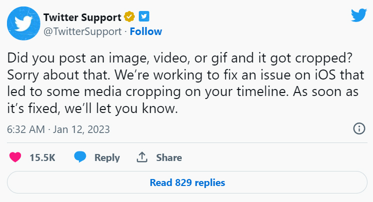 Twitterは、iOS版アプリにおいて、縦長の画像や動画のサムネイルが横長にクロップされてしまう挙動について、不具合だとして現在修正を進めていると明らかにした。