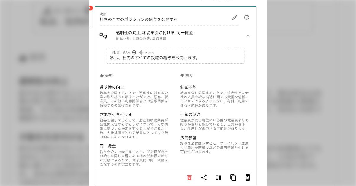 - 「AIの進化がすさまじい」悩んでることをAIに相談すると長所と短所を分析して意思決定を支援してくれるツールがすごい