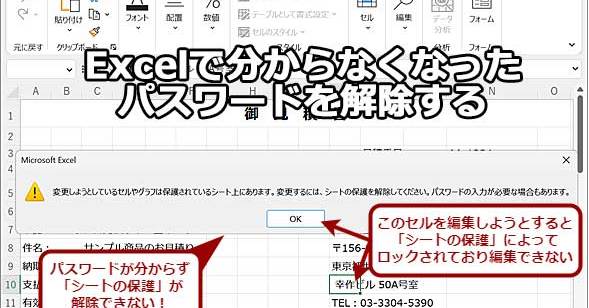 Excelで、操作ミスなどによって値が書き換わらないようにシート保護を使って特定のセルを編集不可能にしたり、書き込みや読み込みに対してパスワードを設定したりすることはないだろうか。きちんとパスワードが管理されていれば問題ないが、前任者が設定したパスワードが分からなくなるといったことも起こりがちだ。そんなパスワードが分からなくなったシートのパスワードを解除する方法を紹介しよう。