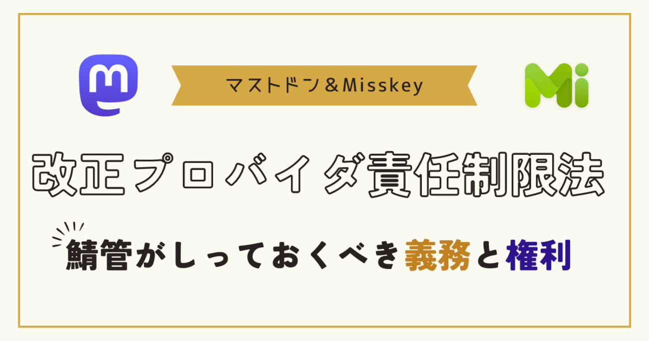 マストドンと改正プロバイダ責任制限法 鯖管が知っておくべき義務と権利 – ashphy's commit logs