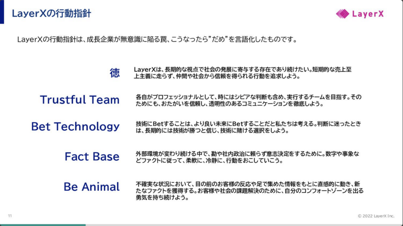 こんにちは、LayerXのエンジニア id:kikuchy です。 このnoteは「LayerXアドベントカレンダー2023春」の12日目の記事 です。 今回は、LayerXの行動指針の1つである「Trustful Team」をテーマにお送りします。前回はフィールドセールスの @hiroki_naka0121 さんによる「LayerX・バクラクフィールドセールスのオンボーディング・イネーブリングへの取り組み〜入社1か月の視点から〜」でした。 来週はカスタマーサクセスの @tomo_rim さんが登場します、お楽しみに! LayerXには5つの行動指針があり、そのうちの一つが「Trustful …