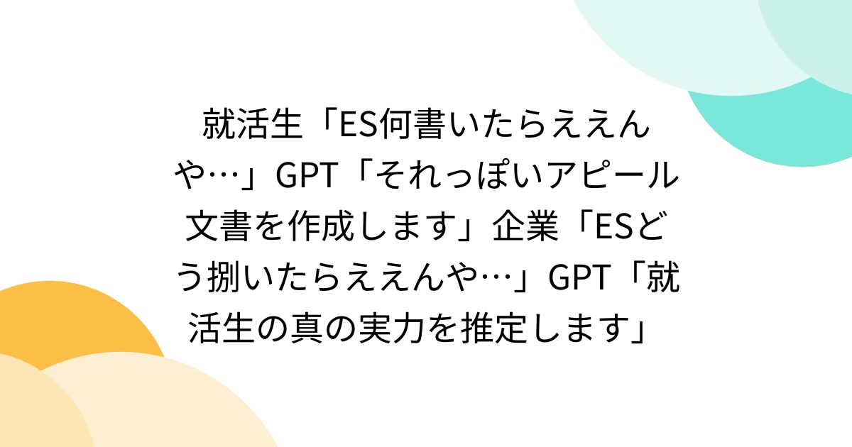 就活生「ES何書いたらええんや…」GPT「それっぽいアピール文書を作成します」企業「ESどう捌いたらええんや…」GPT「就活生の真の実力を推定します」
