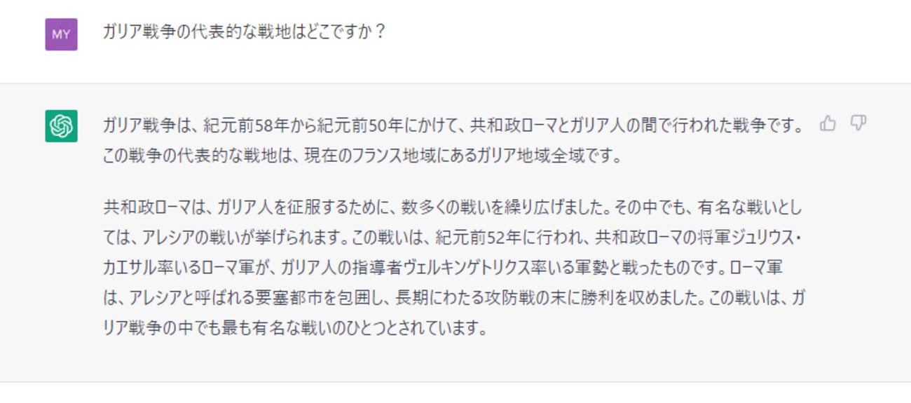 この記事が話題になっていた。note.com たとえば、今、僕はガリア戦争(紀元前58~50年)を舞台にしたSF娯楽小説の戦闘シーンを書いているのだけど、ローマ兵の剣の刃渡りの長さがわからないと戦闘シーンの駆け引きの描写がリアルにならないし、挿絵も描けない(プロの方にカラー挿絵を描いてもらうことになっている)。そこで、以下のようにChatGPT(GPT4)に聞いてみた。ガリア戦争に従軍したローマ兵の剣の刃渡りはどれくらいの長さでしたか? ChatGPTを使用したらこのことをどのように調べられるか考えてみる。 (ちなみに筆者は課金してないのでGPT4でなく無料のほうです) 研究者や、図書館でレフ…