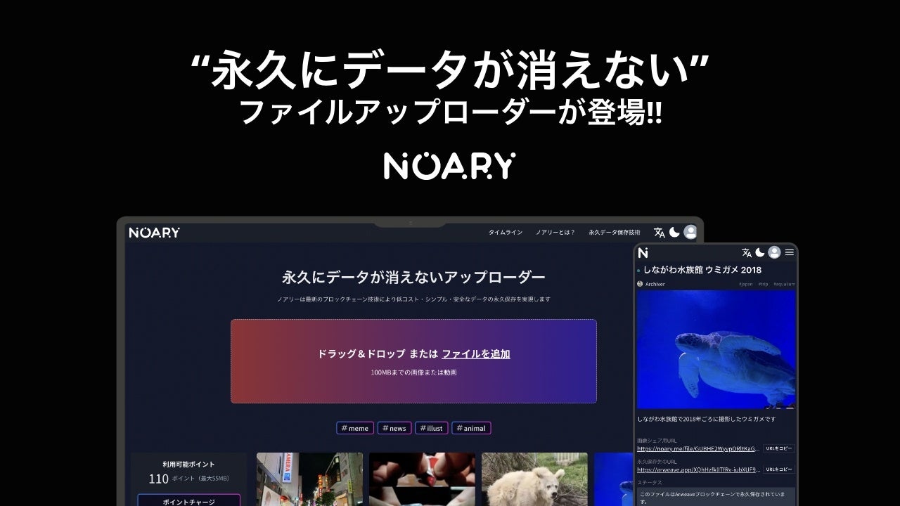 - "永久にデータが消えない"WEB3.0アップローダー「NOARY」を正式リリース&無料の永久保存枠を全員にプレゼント!