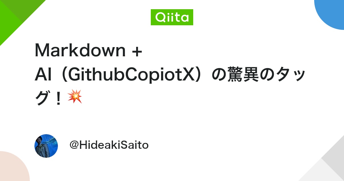 - Markdown + AI(GithubCopiotX)の驚異のタッグ!💥 2023年新世代の爆速ライティング体験へようこそ!💻いま、✨GithubCopiotXでMarkdownを作らないで、いつ作りますか? – Qiita