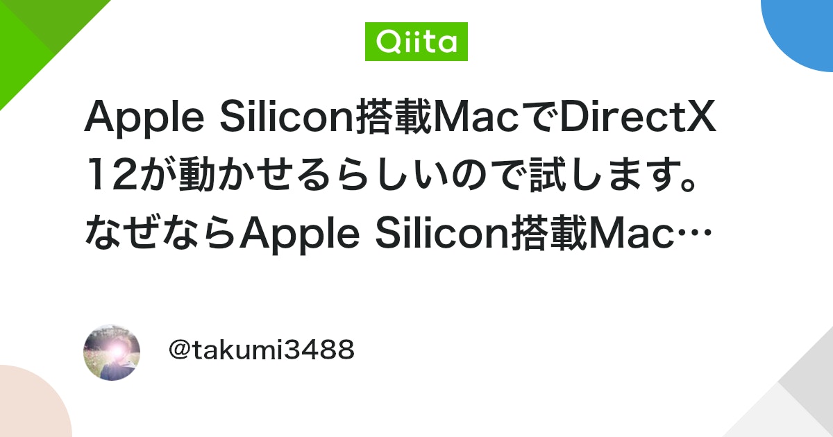 - Apple Silicon搭載MacでDirectX 12が動かせるらしいので試します。なぜならApple Silicon搭載MacでDirectX 12が動かせるらしいからです。 – Qiita