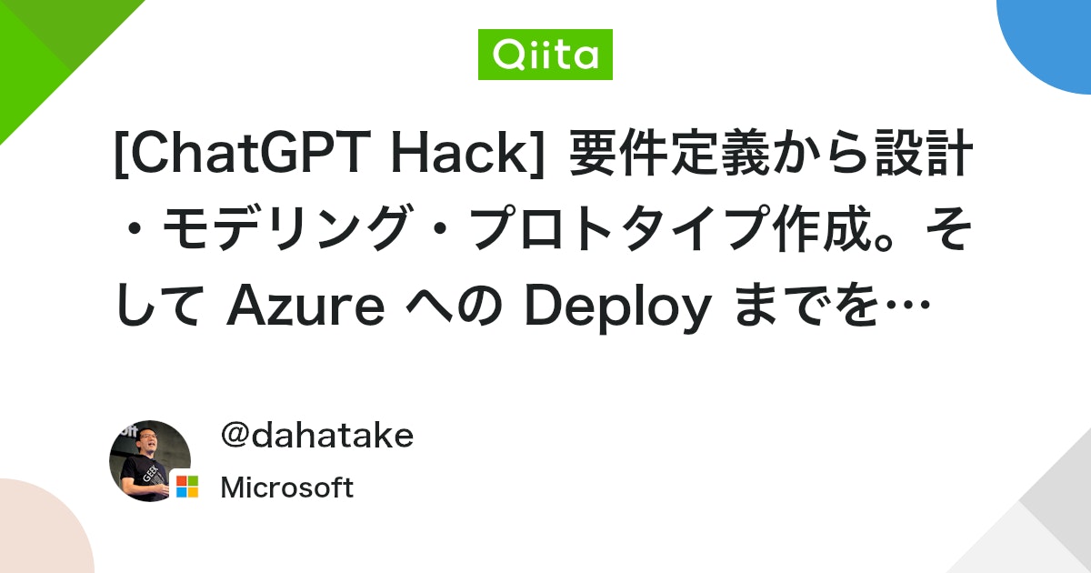 [ChatGPT Hack] 要件定義から設計・モデリング・プロトタイプ作成。そして Azure への Deploy までを。ChatGPT に作らせた – Qiita