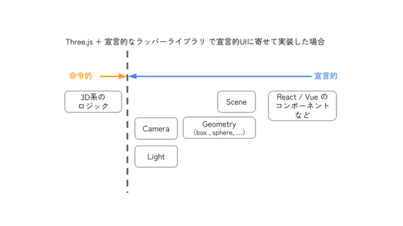 1 はじめに スペースリーでエンジニアをしている長谷川です。 最近は3DのWebアプリの開発を担当していて、弊社でリリースしている「パノラマ変換3Dプレイヤー」のコンテンツ作成機能などを開発しています。 3DのWebアプリを開発する際には「React/Vue × WebGL系ライブラリ」という構成が代表的なケースの1つであり、弊社でもその構成を選択しました。 ところが、3D Webアプリはサービスの数としては多くないので保守運用まで考慮した設計ノウハウはまだまだ十分に共有されてはおらず、開発を進めるにあたって以下のような懸念点がありました。(詳細は次章) 「宣言的なReact/VueのWebア…