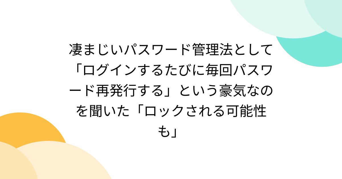 凄まじいパスワード管理法として「ログインするたびに毎回パスワード再発行する」という豪気なのを聞いた「ロックされる可能性も」