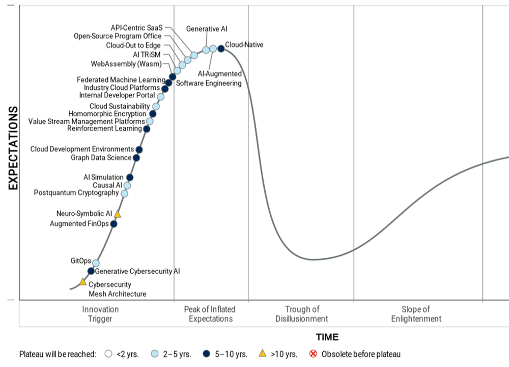 米ガートナー「先進テクノロジーのハイプサイクル2023年」を発表。GitOpsは黎明期、生成的AIとクラウドネイティブは過度な期待のピーク