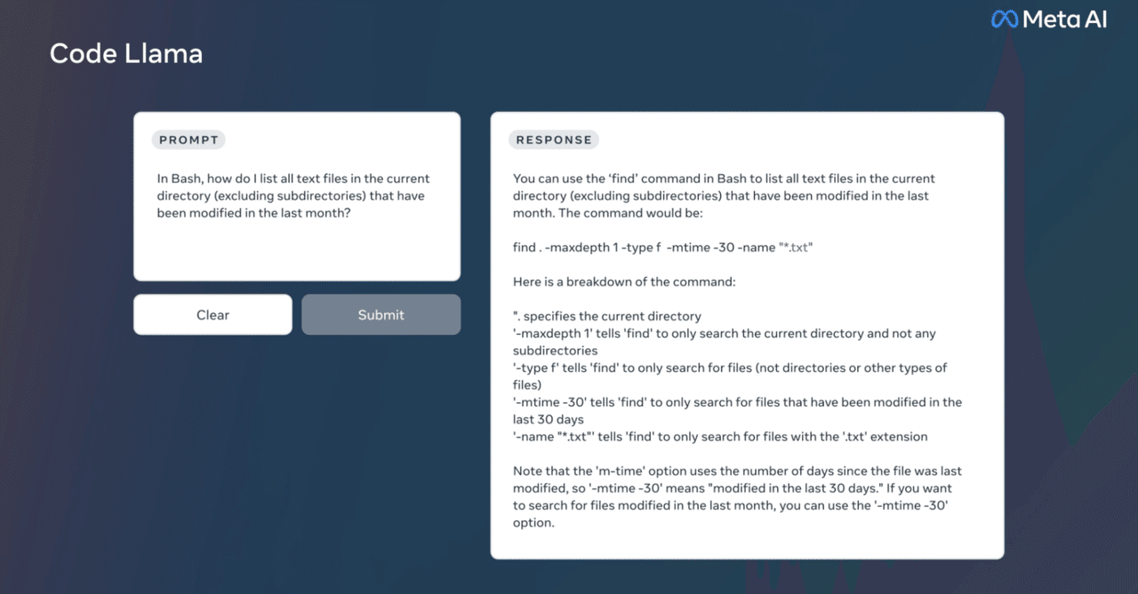 FacebookやInstagramを運営するMetaが、テキスト入力を元にプログラムのコードを生成するAI「Code Llama」をリリースしたと発表しました。モデルはLlama 2と同じ「Llama 2 Community License」で公開されており、月間アクティブユーザー数が7億人以下の場合は無償で商用利用することが可能です。