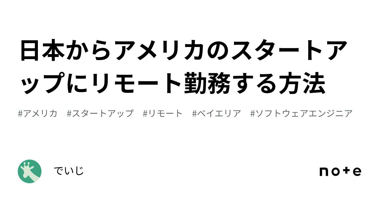 - 日本からアメリカのスタートアップにリモート勤務する方法|でいじ