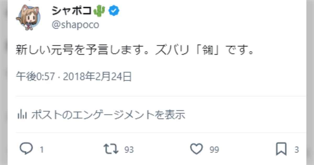 平成30年2月(新元号発表前)に「令和」を言い当てた超人がTwitterに居た!そのからくりはズバリ「Unicode」