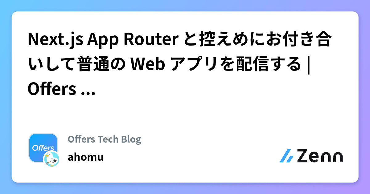 - Next.js App Router と控えめにお付き合いして普通の Web アプリを配信する | Offers Tech Blog