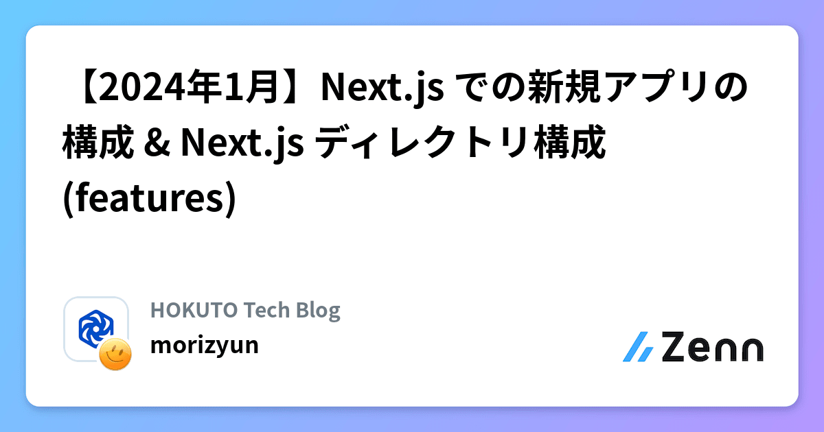 - 【2024年1月】Next.js での新規アプリの構成 & Next.js ディレクトリ構成(features)