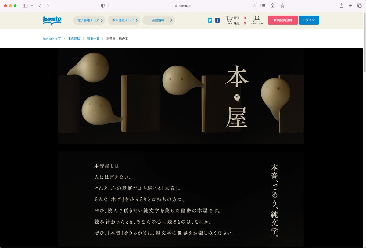 - 購入するまで作品名が分からない「本音屋」、ハイブリッド書店「honto」などで