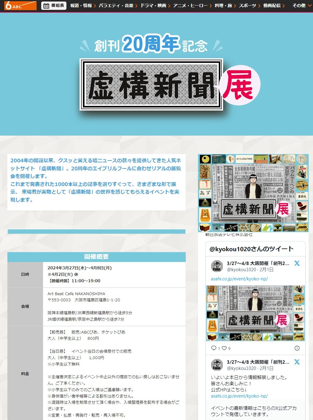 - 「虚構新聞展」リアル開催 20周年のエイプリルフールに合わせ