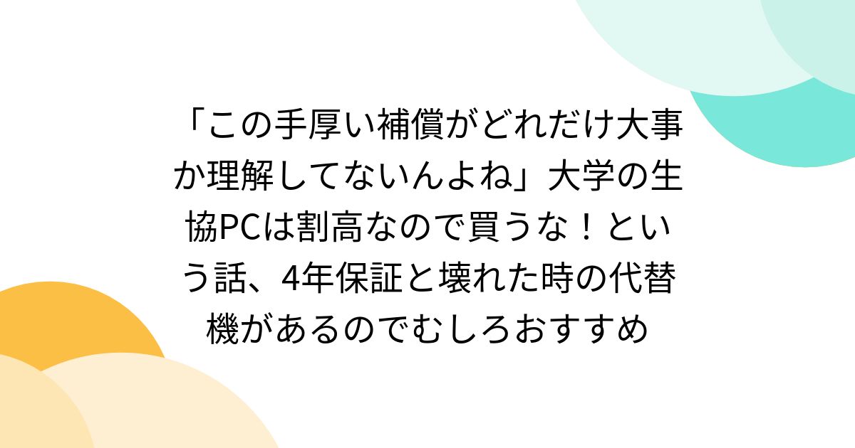 - 「この手厚い補償がどれだけ大事か理解してないんよね」大学の生協PCは割高なので買うな!という話、4年保証と壊れた時の代替機があるのでむしろおすすめ