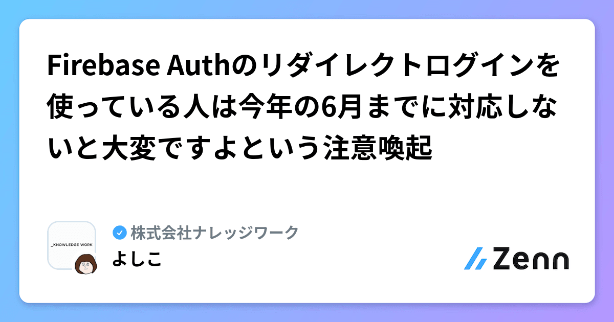 - Firebase Authのリダイレクトログインを使っている人は今年の6月までに対応しないと大変ですよという注意喚起