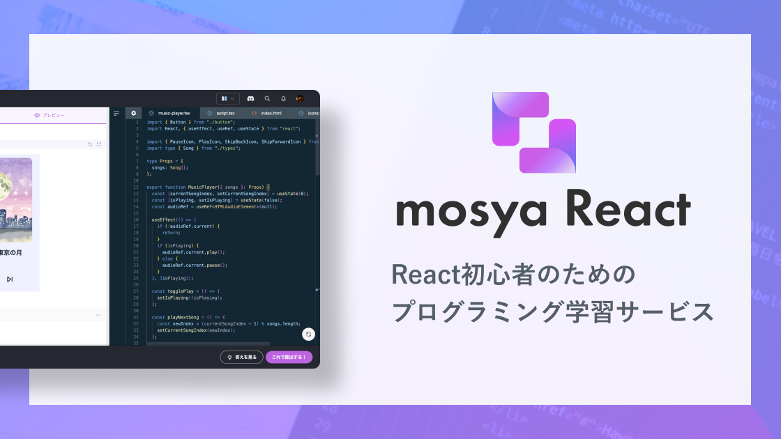 - mosya React – React入門から周辺知識の習得にも活用できるプログラミング学習サービス