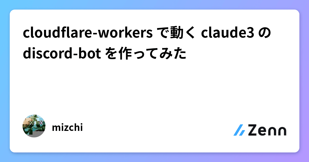 - cloudflare-workers で動く claude3 の discord-bot を作ってみた