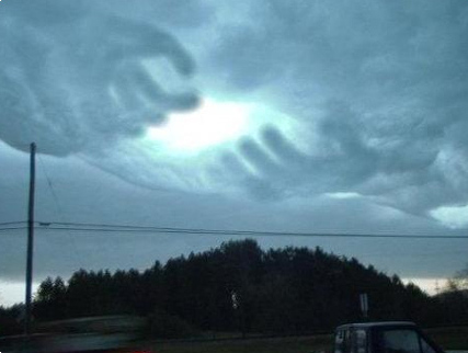 先日、筆者の身内からLINEで画像が送られてきました。手の形をした雲が写っており、「不思議な雲だね。子どもにも見せてあげて」とのこと。画像はSNSのメッセージからのキャプチャーのようで、画像の上には「幸せになって欲しい人に贈ると、受け取った人は幸せになり、願いが叶うそうです!」と書いてあります。