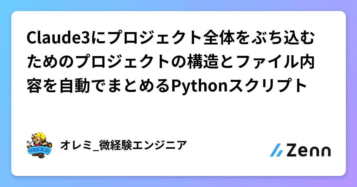 - Claude3にプロジェクト全体をぶち込むためのプロジェクトの構造とファイル内容を自動でまとめるPythonスクリプト