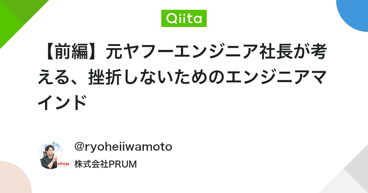 【前編】元ヤフーエンジニア社長が考える、挫折しないためのエンジニアマインド – Qiita