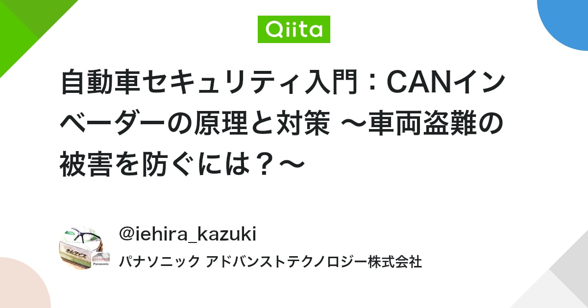 自動車セキュリティ入門:CANインベーダーの原理と対策 ~車両盗難の被害を防ぐには?~ – Qiita