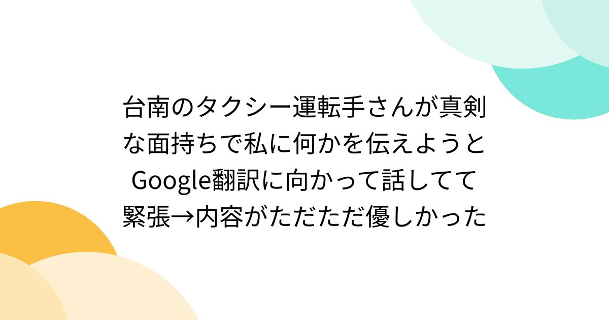 - 台南のタクシー運転手さんが真剣な面持ちで私に何かを伝えようとGoogle翻訳に向かって話してて緊張→内容がただただ優しかった