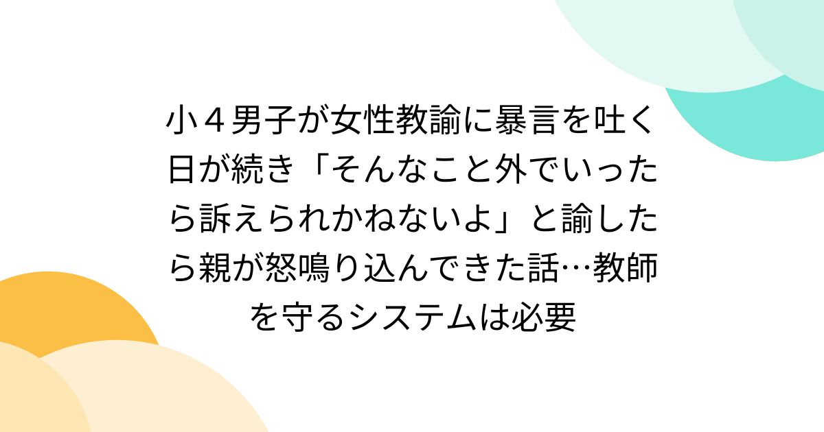 小4男子が女性教諭に暴言を吐く日が続き「そんなこと外でいったら訴えられかねないよ」と諭したら親が怒鳴り込んできた話…教師を守るシステムは必要