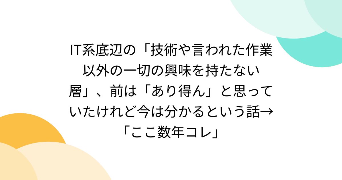 IT系底辺の「技術や言われた作業以外の一切の興味を持たない層」、前は「あり得ん」と思っていたけれど今は分かるという話→「ここ数年コレ」