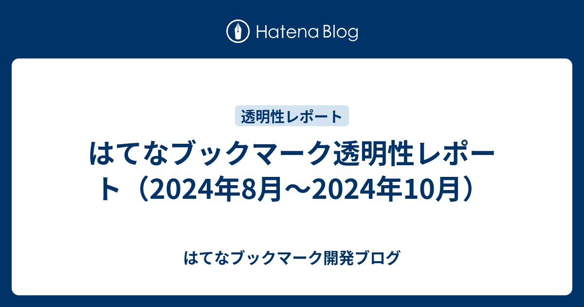- はてなブックマーク透明性レポート(2024年8月~2024年10月) – はてなブックマーク開発ブログ