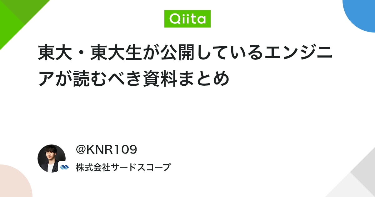 東京大学が公開しているエンジニアが読むべき資料まとめ – Qiita