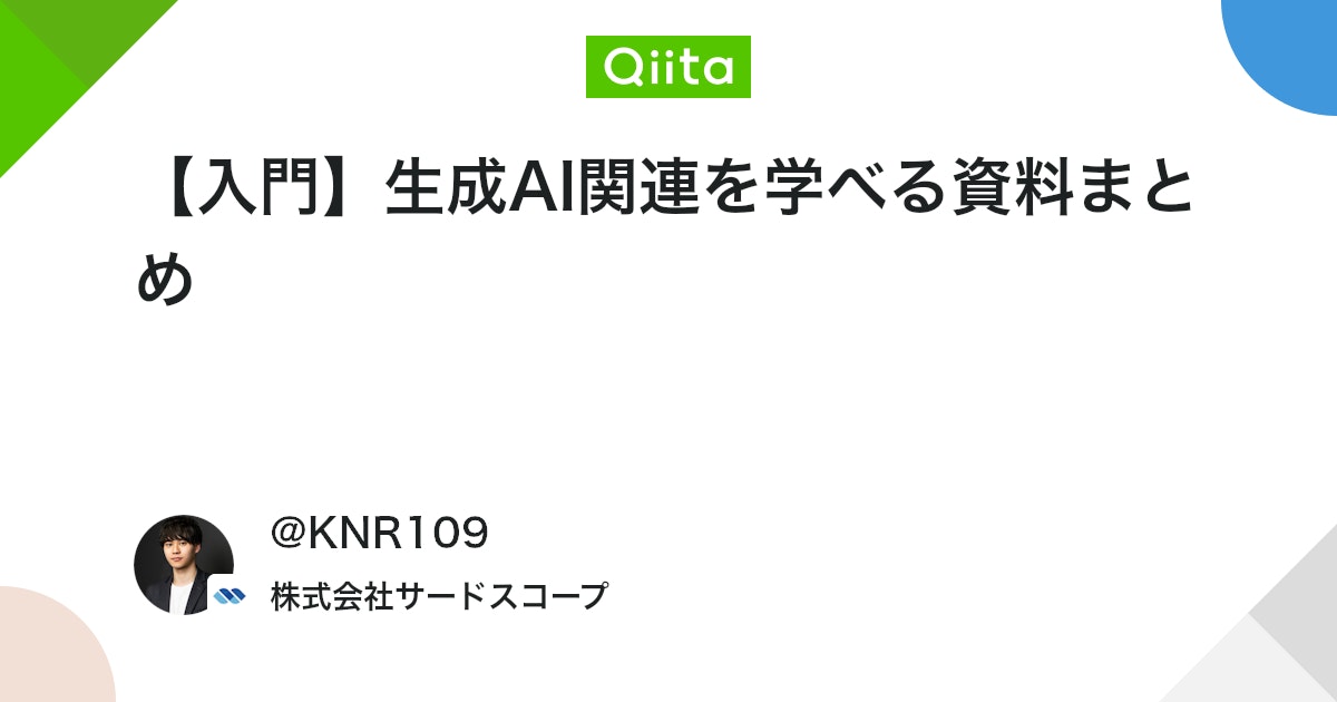 - 【入門】生成AI関連を学べる資料まとめ – Qiita