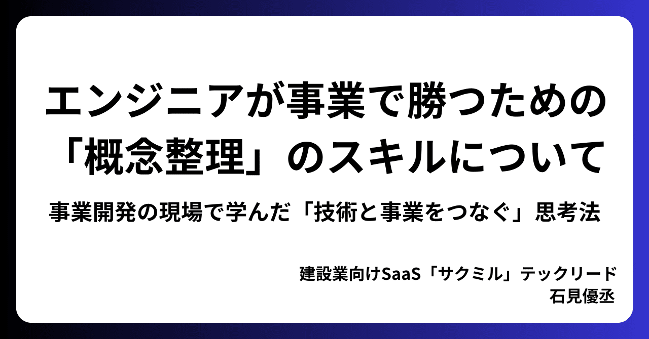 エンジニアが事業で勝つための「概念整理」のスキルについてーー事業開発の現場で学んだ「技術と事業をつなぐ」思考法|naro143