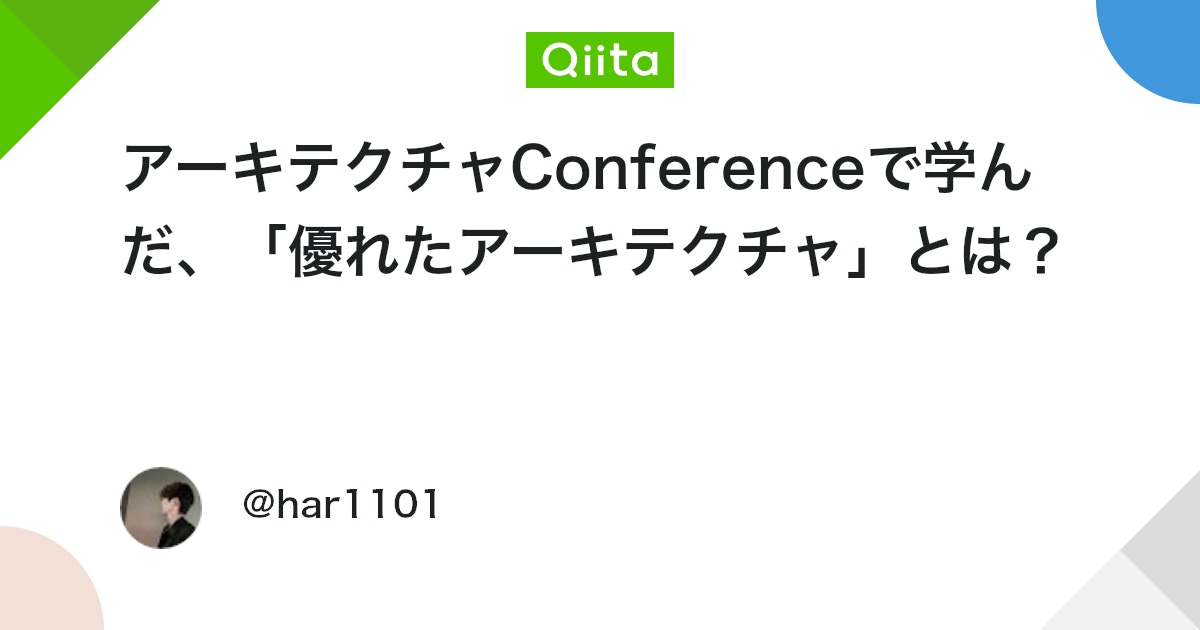 アーキテクチャConferenceで学んだ、「優れたアーキテクチャ」とは? – Qiita