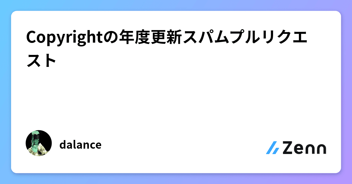 Copyrightの年度更新スパムプルリクエスト