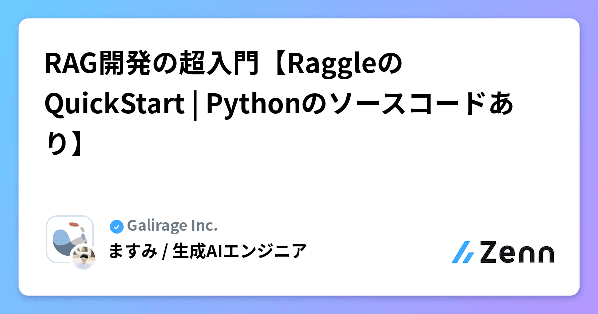 - RAG開発の超入門【RaggleのQuickStart | Pythonのソースコードあり】