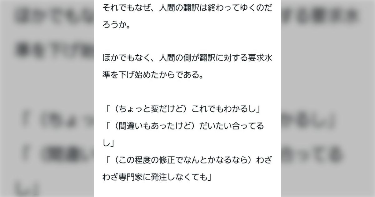 AI翻訳の影響で仕事が激減した翻訳者さんによるnoteが切ない「人間の側が翻訳に対する要求水準を下げ始めた」