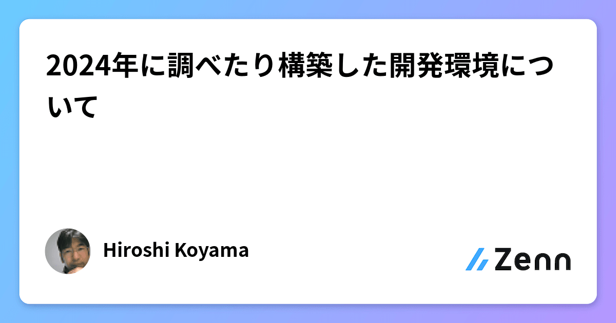 - 2024年に調べたり構築した開発環境について