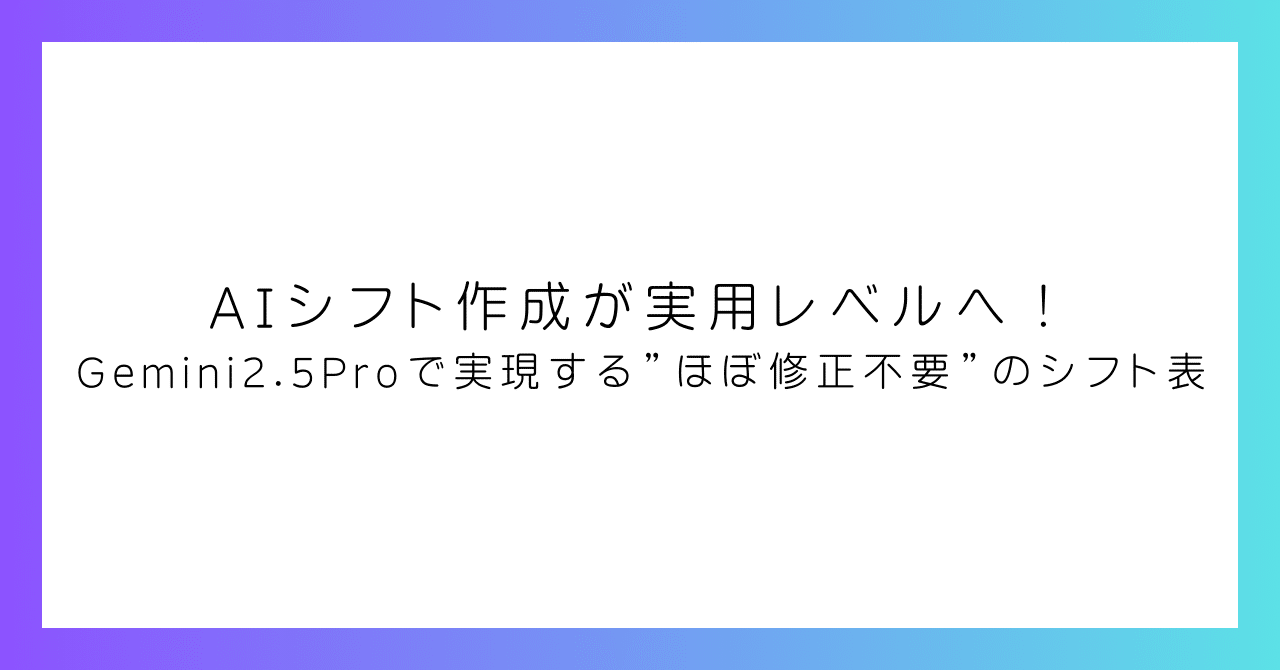 AIシフト作成が実用レベルへ!Gemini2.5Proで実現する”ほぼ修正不要”のシフト表|genkAIjokyo|ChatGPT/Claudeで論文作成と科研費申請