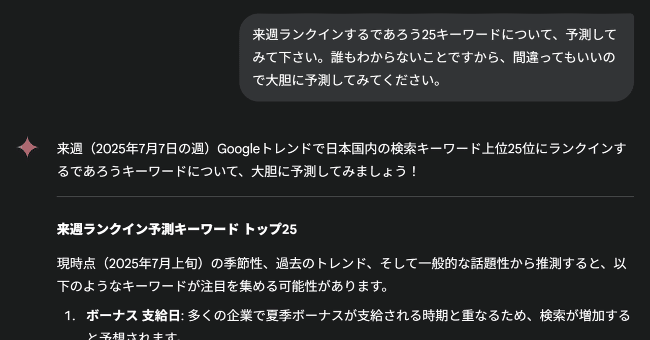 それまで特別な人しか体験できなかったことが、比較的誰でもできるようになることを「●●の民主化」と言ったりします。(まだ、費用はこなれてませんが、それでもNASAしかロケットを打ち上げていなかった時代に比べれば)「宇宙旅行の民主化」や3Dプリンターが誰でも手に入るので「製造の民主化」などが代表的です。 全く同じ文脈で、これまでは、特殊な訓練を受け、専門のツールを使える人だけができていた「データ分析」が、いま、まさに「民主化フェーズ」にはいっています。そう、Geminiなどの生成AIによって このブログでは、「データ分析」がどれくらい「誰でもできるものになっているのか?」について、デー