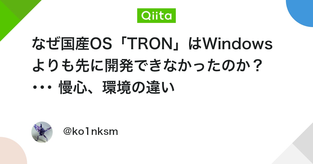 なぜ国産OS「TRON」はWindowsよりも先に開発できなかったのか? ・・・ 慢心、環境の違い – Qiita