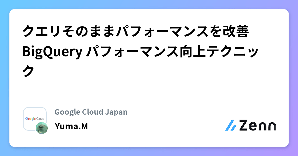 クエリそのままパフォーマンスを改善 BigQuery パフォーマンス向上テクニック