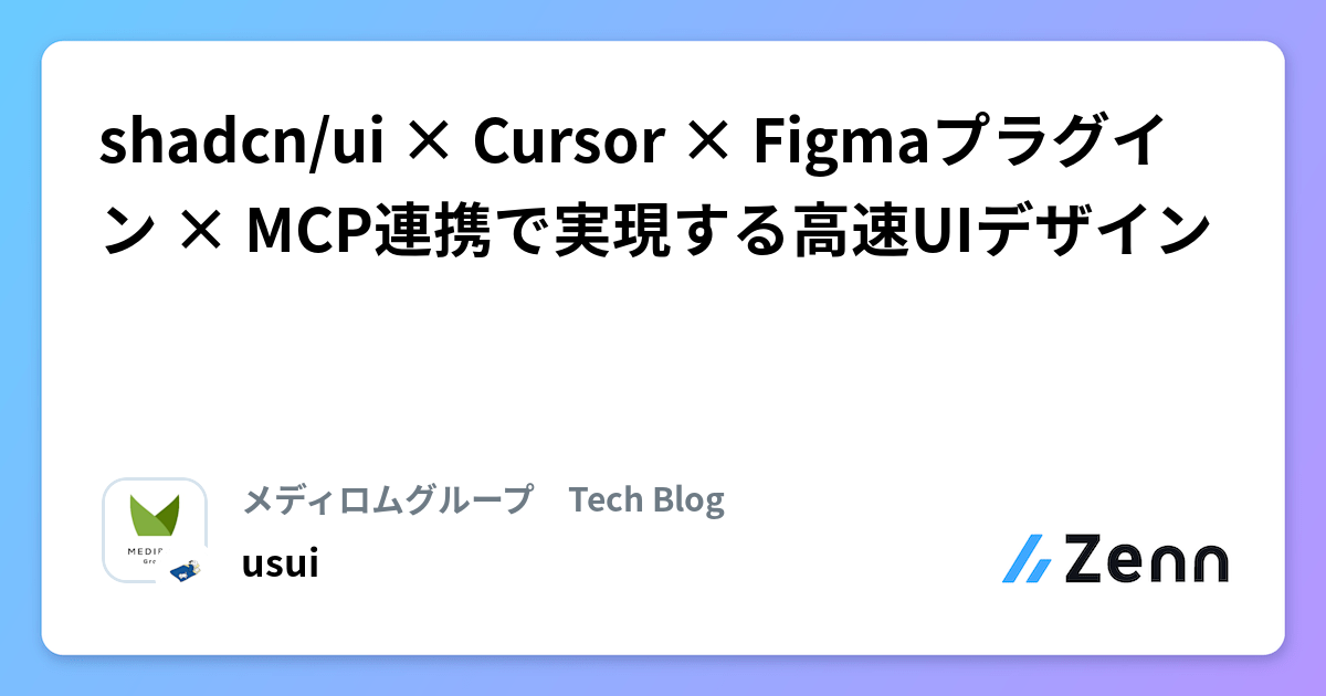 - shadcn/ui × Cursor × Figmaプラグイン × MCP連携で実現する高速UIデザイン