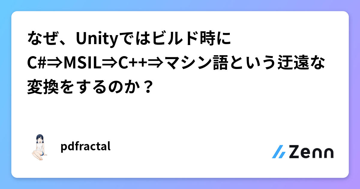 なぜ、Unityではビルド時にC#⇒MSIL⇒C++⇒マシン語という迂遠な変換をするのか?
