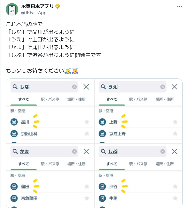 JR東日本アプリ、「しぶ」検索で「渋谷」が出るよう改修中 今は「牛渕」